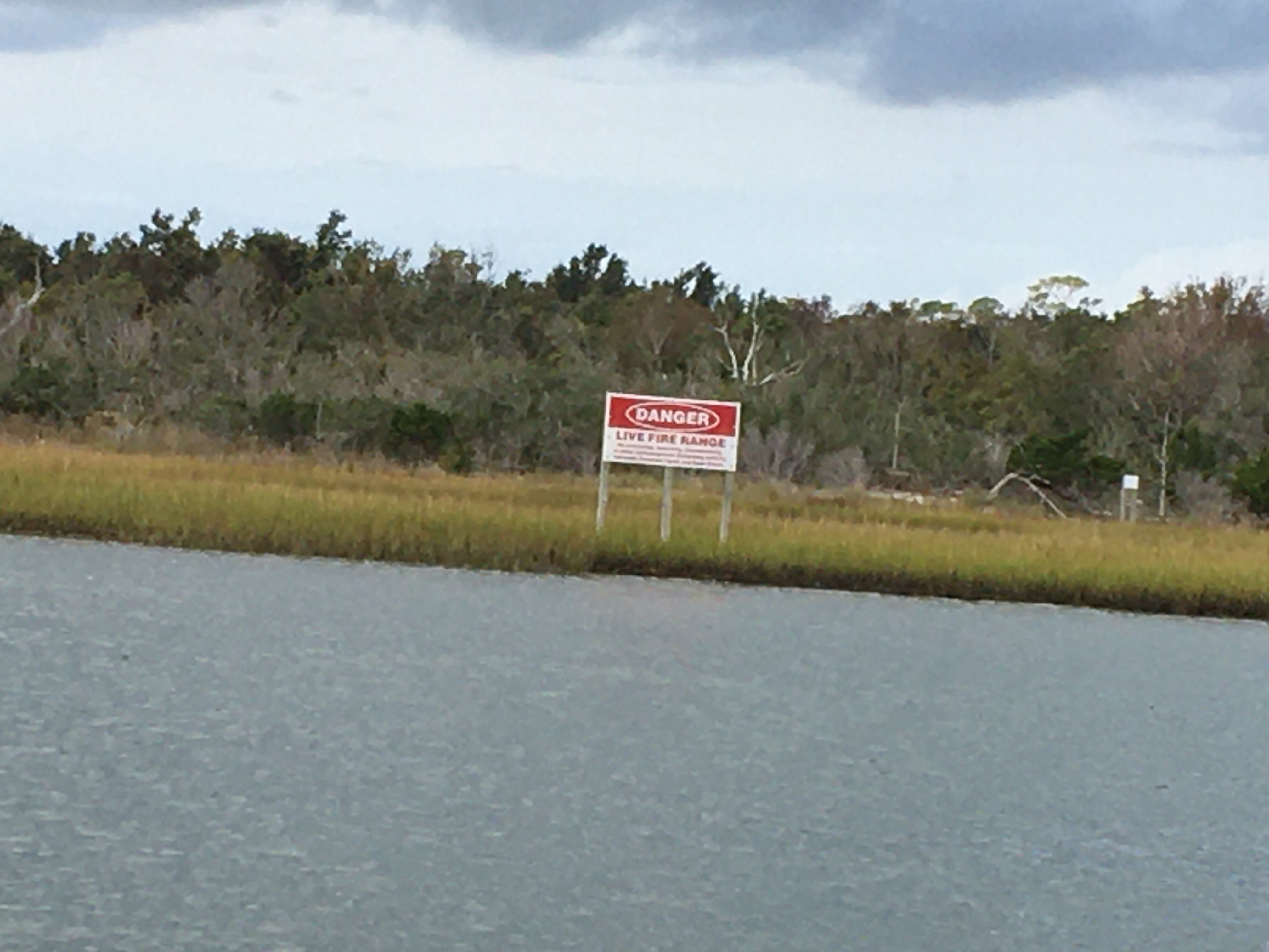 The ICW cuts through a live fire range at the Camp. When they practice, they shut the ICW down. Fortunately, they were taking the day off when we went through.