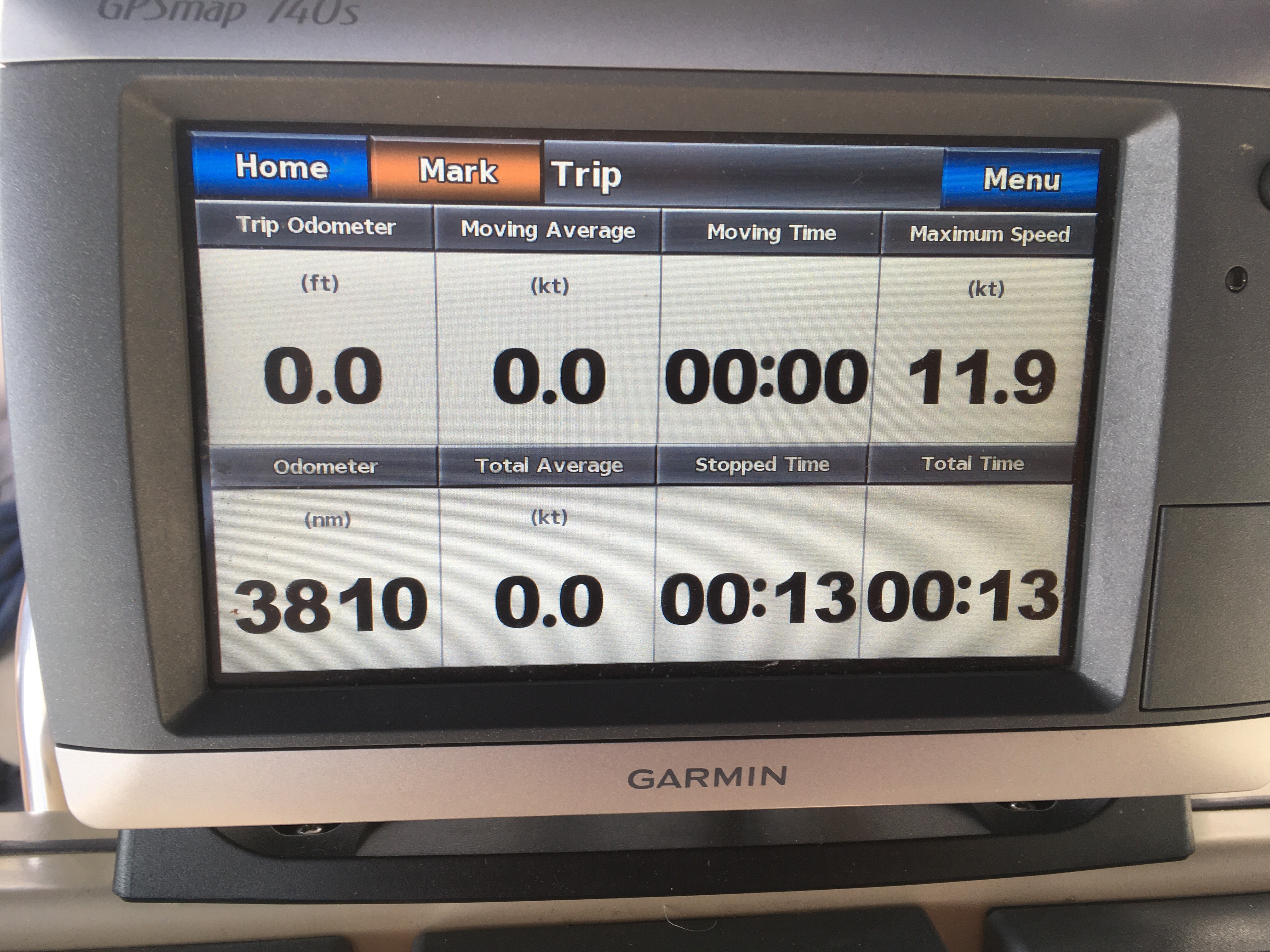 Errors updating the new Garmin.Tied up next to the marina officeGarmin said they can’t transfer the trip odometer or max speed. 3,810 nautical miles on the trip. Our max speed was 11.9 knots.